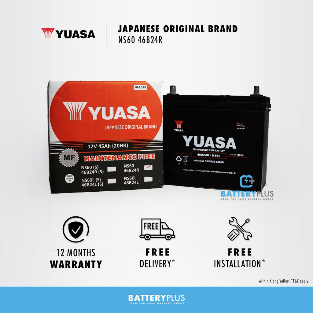Ns60s Ns60ls Ns60 Ns60l 46b24 12 Plate Yuasa Mf Car Battery Bateri Kereta Shopee Malaysia